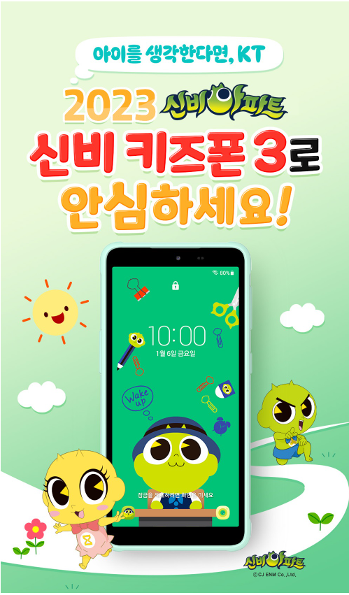 KT에서는 신비키즈폰3이고, 신비아파트를 이용한 키즈폰을 출시해 판매하고있습니다.
